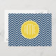 Navy Blue Chevrons with Custom Yellow Monogram Postcard