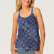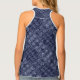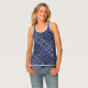 Navy blue tank top with an abstract cityscape pattern.