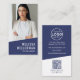 Navy Blue Contemporary Photo QR Code Logo Vertical Business Card