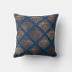 Navy Blue Copper Antique Gold Damask Pattern Throw Pillow
