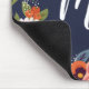 Floral mouse-pad featuring a frame of hand-drawn flowers in orange, hot pink, coral red, and blush pink against a dark blue background. Add your initial in a pretty white calligraphy script.