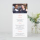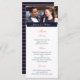 Simple and elegant modern photo wedding menu, belong to my Happy Together collection, features your custom photo with the names in a beautiful white script typo over a blue background with a big peach ampersand.