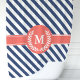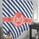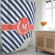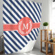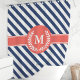 Navy Blue & Coral Nautical Stripes Monogram Shower Curtain