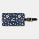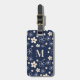 A navy blue background with a retro style floral pattern in white and cream. Personalize and add your monogram letter, initial. Your contact information on the back.
