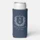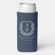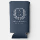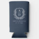 Navy Blue Crest Modern Monogram Wedding Seltzer Can Cooler