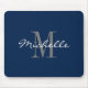Navy blue custom monogrammed name initial letter computer Mouse Pad. Classy script typography with customizable background color. Chic monogram design for men, women and kids. Add your own name initial letter. Personalized Christmas or Birthday gift idea for dad, father, mom, mother, husband, wife, son, daughter, coworker, colleague, employee, friend, teacher, coach etc.