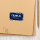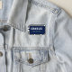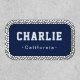 Simple custom name patches on color editable charcoal gray background with navy blue border stitching, no minimum order quantity and no setup fee.