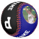 Make your own customized softball for fastpitch softball players and teams with navy blue team colors. Just click to personalize the template and replace the placeholder image of the softball player with your own custom photo. You can upload the same photo on both side, or a different one on each side. Then type in your softball team name, player name, player position and player jersey number in the corresponding text boxes. These make a fantastic personalized gift for softball players with navy blue team colors. The ultimate softball senior night gift for high school and college softball seniors.