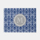 Navy Blue Damask Grey Monogram Doormat