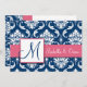 Plain white envelopes are included with paper invitations and will come to fit the invitation size you select. If you don’t need the envelopes, you may choose to not receive them by selecting the dropdown below "Envelopes" and choosing "None." If you’d like to have a design on your envelopes, you can browse all of these available envelopes to find the design that complements your Navy Blue Damask Monogram Invitation Pink.
