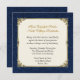 Navy Blue Damask & Vintage Gold Wedding Invitation