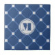 Distinctive tiled design is made of navy blue diamonds with light gray squares. The monogram is user-defined and can be customized for different fonts or colors. The diamond pattern can also be scaled or rotated with customization.