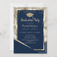 Navy Blue Diamonds Gold Grad Cap Marble Graduation Invitation