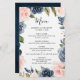 Navy Blue Dusty Blush Pink Floral Wedding Menu