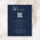 Elegant navy blue wedding details card with QR code and a butterfly. For more advanced customization of this design, please click the DESIGN TOOL BUTTON above!