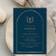 Navy Blue Elegant Gold Arch Wreath Cross Baptism Invitation