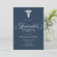 Navy Blue Elegant Medical Caduceus Graduation Invitation