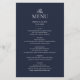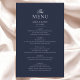 Enhance your wedding reception with our sophisticated Navy Blue Wedding Menu Card. Crafted with timeless serif font, this elegant menu showcases each delicious course, providing a refined and polished look for your table settings. The deep navy blue color adds a touch of luxury and pairs beautifully with classic or modern wedding themes. Perfect for couples seeking an elegant and stylish design. Personalize your wedding menu today on Zazzle to make your special day truly unforgettable!