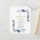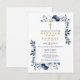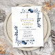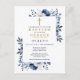 Navy Blue Elegant Modern Floral Baptism Invitation Postcard
