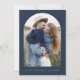 Wedding Navy Blue and Gold Save the Date Cards that have a photo on the front. The Save the Date cards contain a modern hand lettered cursive script typography that are elegant, simple and modern to use after you minimalist simple wedding day celebration.