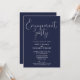 Plain white envelopes are included with paper invitations and will come to fit the invitation size you select. If you don’t need the envelopes, you may choose to not receive them by selecting the dropdown below "Envelopes" and choosing "None." If you’d like to have a design on your envelopes, you can browse all of these available envelopes to find the design that complements your Navy Blue Elegant Script Engagement Party Invitation.
