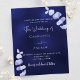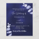 Navy blue background, decorated with eucalyptus stems, sprigs. The blue color is uneven. Personalize and add your names and the details.