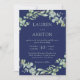 Navy Blue Eucalyptus Greenery Wedding Invitation