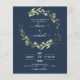 Navy Blue Eucalyptus QR Code Wedding Invitation