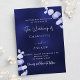 Navy blue eucalyptus wedding postcard