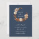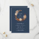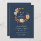 Navy Blue Fall Wreath Wedding Save the Date. This elegant save the date card features a beautiful wreath of watercolor terracotta, taupe, and brown leaves and flowers on a navy blue background with white text. This is part of the Autumn Romance Collection.
