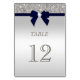 Navy Blue Faux Bow Silver Sequins Table Number