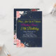 Celebrate in style with a navy blue floral birthday invitation featuring watercolor peonies and ranunculus in soft corners, accented with delicate gold speckles. Perfect for milestone birthdays or evening garden parties.