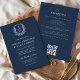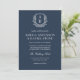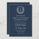 Navy Blue Floral Crest Monogram Wedding QR Code Invitation