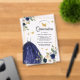 Navy Blue Floral Dress Butterfly Gold Quinceanera Acrylic Invitations
