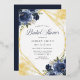 Navy Blue Floral Gold Geometric Bridal Shower Foil Invitation