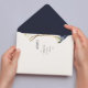 Plain white envelopes are included with paper invitations and will come to fit the invitation size you select. If you don’t need the envelopes, you may choose to not receive them by selecting the dropdown below "Envelopes" and choosing "None." If you’d like to have a design on your envelopes, you can browse all of these available envelopes to find the design that complements your Navy Blue Floral Gold Geometric Bridal Shower Invitation.