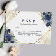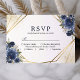 Navy Blue Floral Gold Geometric Wedding RSVP Card