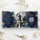 Navy Blue Floral Gold Lace QR Code Wedding Tri-Fold Invitation