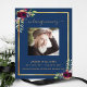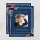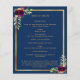 An elegant 2-page program. A navy blue background, a faux gold frame, burgundy florals and space for your photo. Personalize and add name, dates and your text.