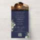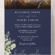 Navy Blue Floral Greenery QR Code Wedding Photo All In One Invitation
