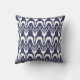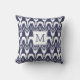 Navy Blue Floral Ikat Bohemian Monogram Outdoor Pillow