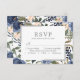 Navy Blue Floral Pattern Watercolor Wedding RSVP Card