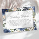 Enhance your wedding invitations with this elegant navy blue floral pattern wedding details enclosure card. Featuring a sophisticated design with rich navy blue flowers and lush greenery, this card is perfect for providing your guests with essential information such as directions, accommodations, and RSVP details. The stylish script and beautiful floral accents add a touch of charm and elegance to your wedding stationery suite. Customize with your specific details to ensure your guests are well-informed and impressed by your attention to detail. This enclosure card complements a variety of wedding themes, from classic to contemporary.