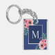 Navy Blue | Floral Photo Monogram Key Ring