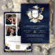 Navy Blue Floral QR Code Photo Crest Wedding Invitation