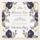 Beautiful floral illustration of navy blue and white flowers trimmed in faux gold leaf on this design in Spanish for a Quinceanera Save the Date.