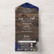 Navy Blue Floral Roses Rustic Wood Lace Wedding All In One Invitation