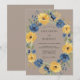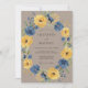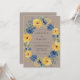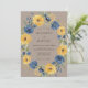 A charming wreath of yellow and deep blue blossoms adorns this design, evoking a romantic and natural feel. The painterly style adds an artistic touch to this rustic motif.