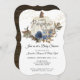 Navy Blue Floral Rustic White Pumpkin Baby Shower Invitation