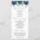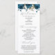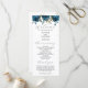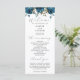 Elegant wedding program featuring watercolor illustration of navy blue peony with greenery. All the wedding ceremony information and the wedding party's name listed on this program.